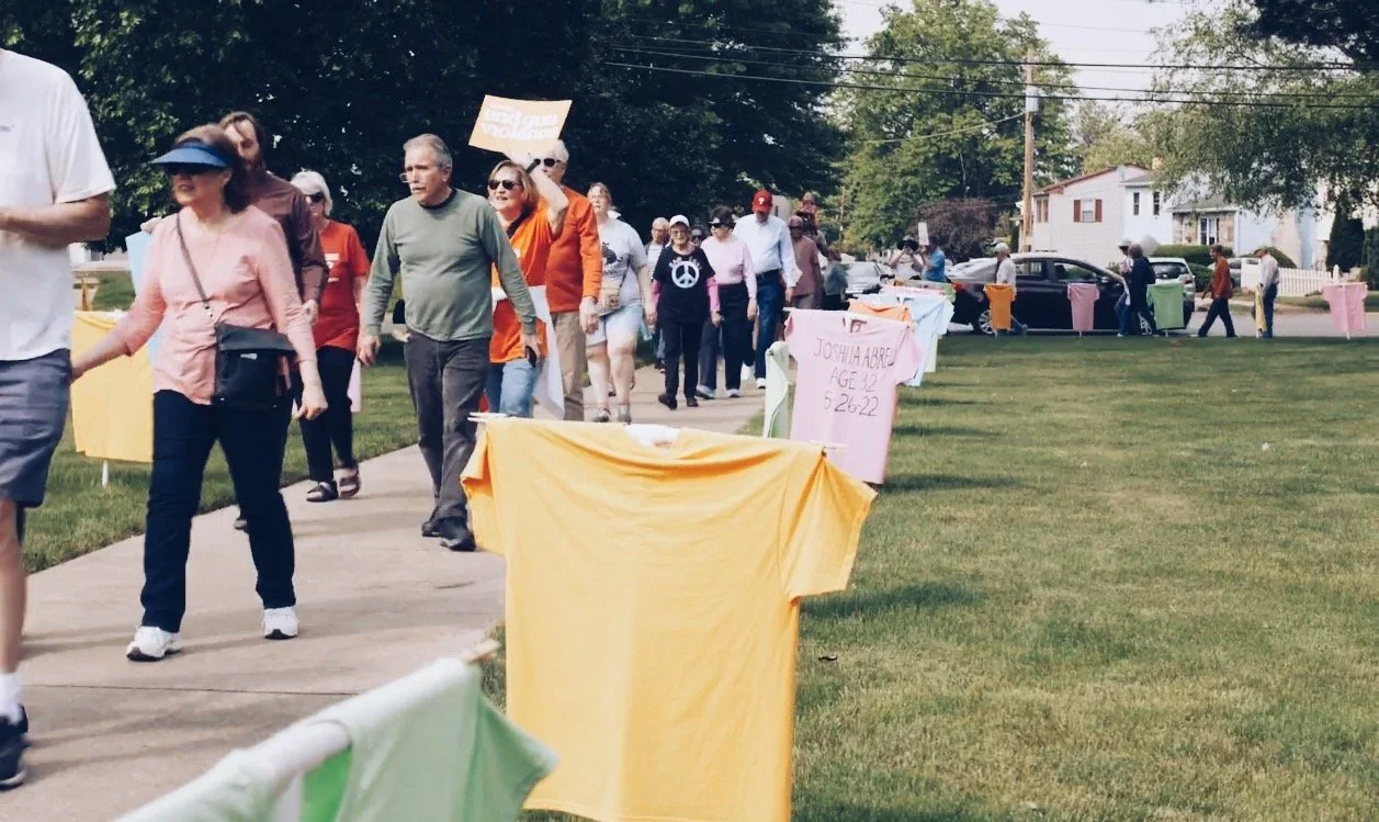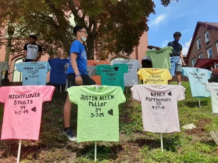 The Memorial to the Lost is a powerful public witness that honors lives taken by gun violence and calls our communities to action. Each shirt represents a life. remembered, named, and lifted in prayer.